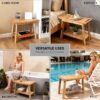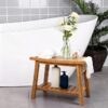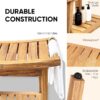 24″ Shower Bench with Shelf & Handles, Solid American Red Oak Wooden Shower Bench Seat for Inside Shower, Non-Slip Bathroom Bench with Adjustable Legs, 300 lbs Capacity
