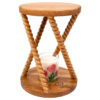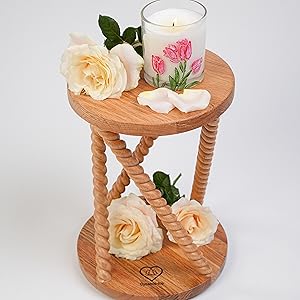 Elegant two-tier wooden stand with spiral legs, offering style, durability, and versatile display for flowers, candles, or decor.