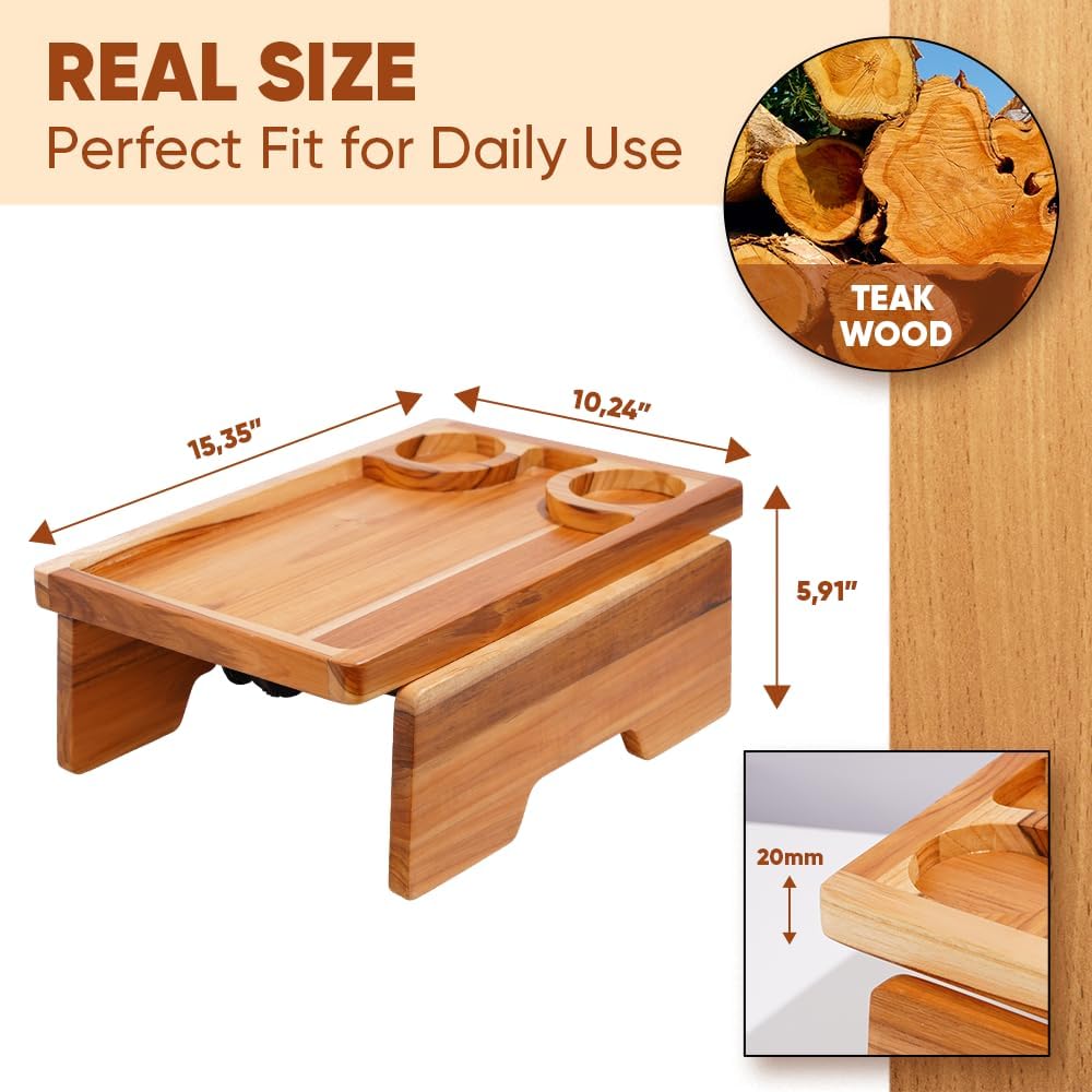 - SOFA TABLE TRAY MADE WITH SOLID TEAK WOOD: Crafted from solid teak wood, this sofa table tray offers superior durability, moisture resistance, and a premium natural grain. Stronger and more refined than bamboo alternatives, it’s built for daily use as a couch side table, tv tray table, or couch desk in your living room.