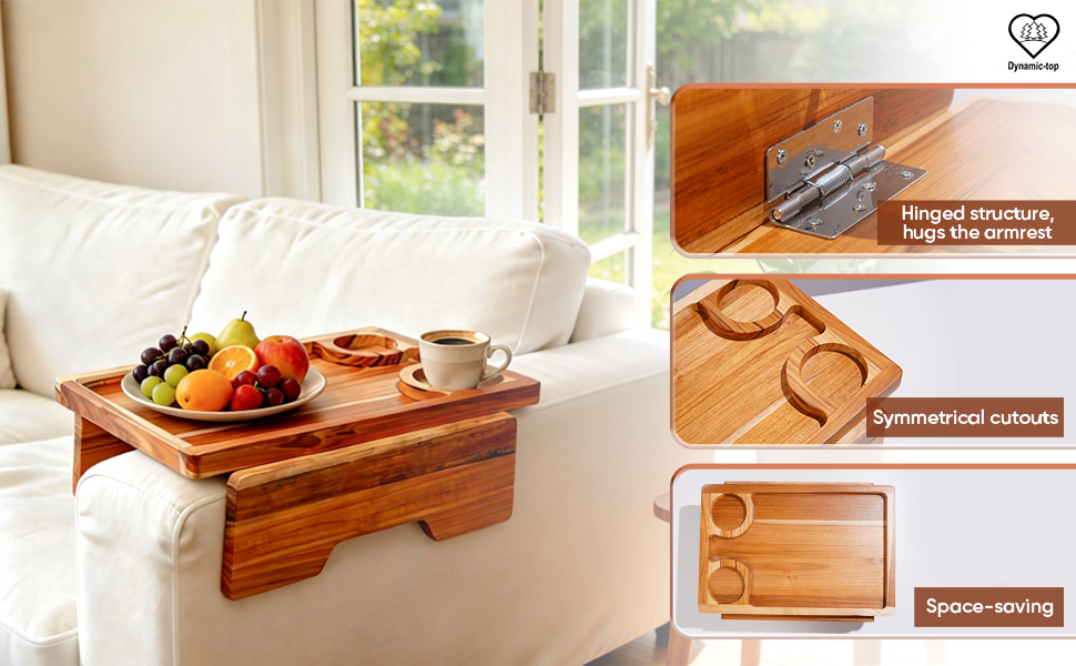 | Title | Dynamic-top 15.35″ x 10.24″ Teak Wood Couch Arm Tray, Sofa Armrest Table with Dual Cup Holders, Clip-on Tray for Wide Couch – Side Table for Eating & Drink, Snack, Phone, Remote |